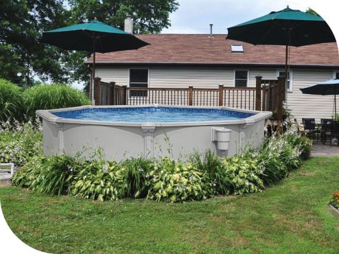 Стальные стенки позволяют оставлять бассейн на участке круглый год.